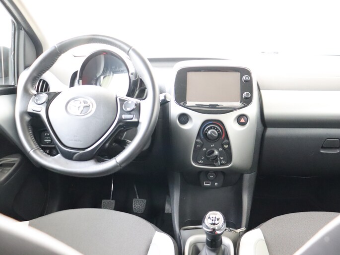 De achteruitrijcamera laat duidelijk zien hoeveel ruimte je nog hebt bij het inparkeren. Het geluidssyteem in deze Toyota Aygo is regelbaar met behulp van de audiobediening op het stuur. Het maakt niet uit hoe warm het buiten is, want met de airconditioning bepaal jij zelf de binnentemperatuur. Deze Toyota is voorzien van centrale deurvergrendeling met afstandsbediening en verstelbaar stuur.