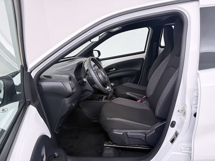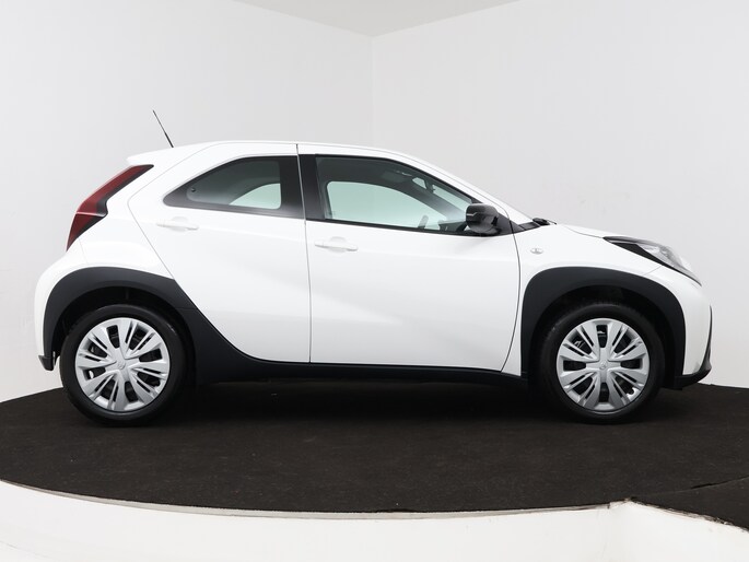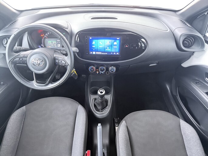 Een handige optie is de achteruitrijcamera. Achteruitrijden, inparkeren en manoeuvreren gaat gemakkelijker dan ooit. Adaptive cruise control houdt de ingestelde snelheid vast en houdt afstand tot het voertuig voor je. Communiceren met je auto? Dat gaat via remote services. Met je smartphone maak je waar dan ook contact om allerlei functies te checken of te activeren. Wat wil je onderweg horen? Er is volop keus, dankzij bluetooth. Het full map navigatiesysteem is met het audiosysteem gecombineerd. Omdat je nu eenmaal niet overal ogen hebt, is deze Toyota Aygo X voorzien van een achteropkomend verkeer waarschuwing die registreert wanneer de afstand tot je achterligger te krap is. Je bent in deze Toyota ook voorzien van DAB ontvangst, airconditioning, lederen stuur en centrale deurvergrendeling met afstandsbediening.