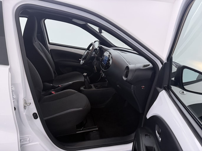 De nieuwste veiligheidssystemen komen in deze Toyota Aygo X samen. Wat deze auto ook kan, is lezen. Hij 'leest' voor jou de verkeersborden tijdens de rit en attendeert je erop door ze op het dashboard te projecteren. Het Lane-keeping systeem zorgt dat je mooi binnen de lijntjes blijft. Ongemerkt buiten de rijstrook komen is er niet meer bij. Mindert een voorligger onverwachts te veel vaart, dan komt de forward collision warning in actie en waarschuwt meteen. Met voorzieningen als hill hold functie, brake assist en bandenspanningcontrolesysteem, ben je altijd veilig onderweg.
