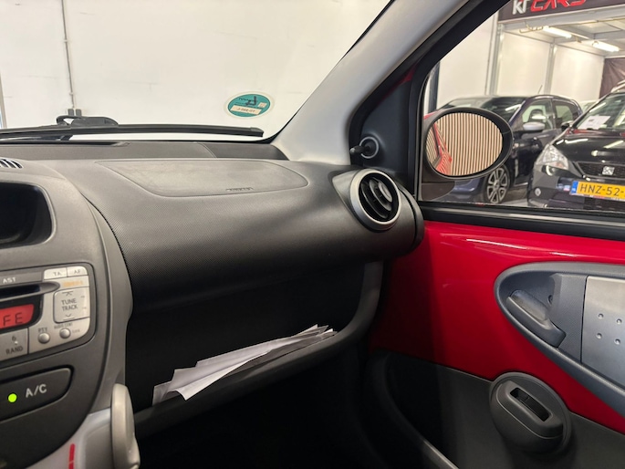 Stap in de wereld van ongecompliceerd rijplezier met deze Toyota Aygo 1.0-12V. Deze betrouwbare en compacte hatchback, uitgevoerd in een levendige rode kleur, is perfect voor stadsrijders en iedereen die waarde hecht aan zuinigheid en praktische mobiliteit. Met slechts 905 kg eigen gewicht en een 1.0-liter driecilindermotor van 50 kW (68 pk), is deze Aygo een lichte, wendbare en efficiënte keuze, met een gemiddeld brandstofverbruik van slechts 4,6 liter per 100 kilometer.