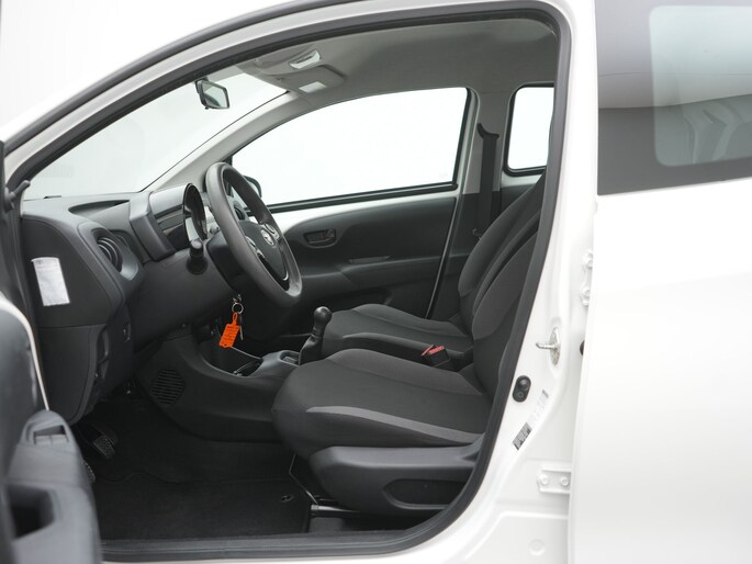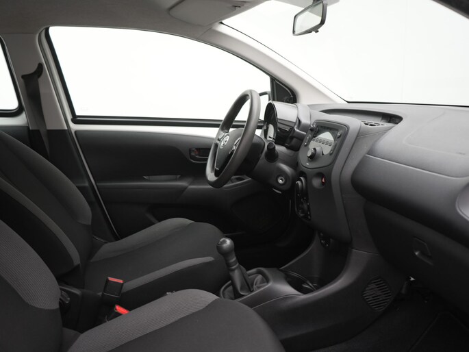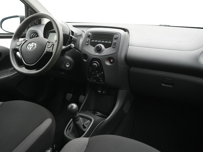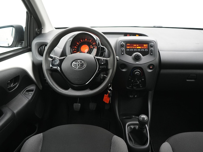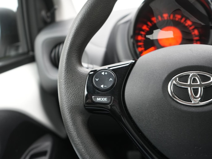 Met de knoppen op het stuur regel jij het audiosysteem, terwijl je je blik op de weg gericht houdt. Aan boord van deze Toyota Aygo is een achteropkomend verkeer waarschuwing voor extra veiligheid. Het hele jaar door zorgt airconditioning voor een prettige temperatuur. Ook centrale deurvergrendeling met afstandsbediening en verstelbaar stuur horen tot de voorzieningen op deze auto.