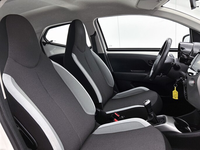 Zoals je mag verwachten van deze Toyota Aygo is hij uitgerust met een reeks aan actieve veiligheidssystemen. De hill hold control zorgt voor een onbeweeglijke positie bij stilstand op elke helling. Een veilige extra is de Brake Assist. Uit onderzoek blijkt dat bestuurders bij een noodstop niet het maximum uit hun remkracht halen. Met deze automatische remondersteuning wel.