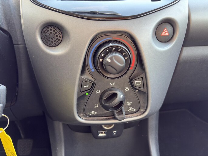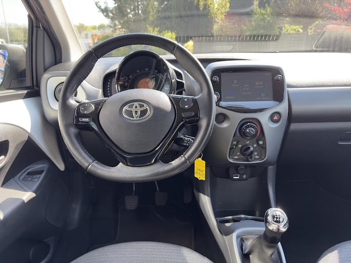 Een onopvallend paaltje of een overstekend kind achter de auto brengt risico's met zich mee. Gelukkig laat de achteruitrijcamera feilloos zien of alles veilig is. Intelligente spraakbediening herkent uw commando's en voert opdrachten snel en soepel uit. Aan boord van deze Toyota Aygo is een achteropkomend verkeer waarschuwing voor extra veiligheid. Het maakt niet uit hoe warm het buiten is, want met de airconditioning bepaalt u zelf de binnentemperatuur. U bent in deze Toyota ook voorzien van lederen stuur en versnellingspook en centrale deurvergrendeling met afstandsbediening.