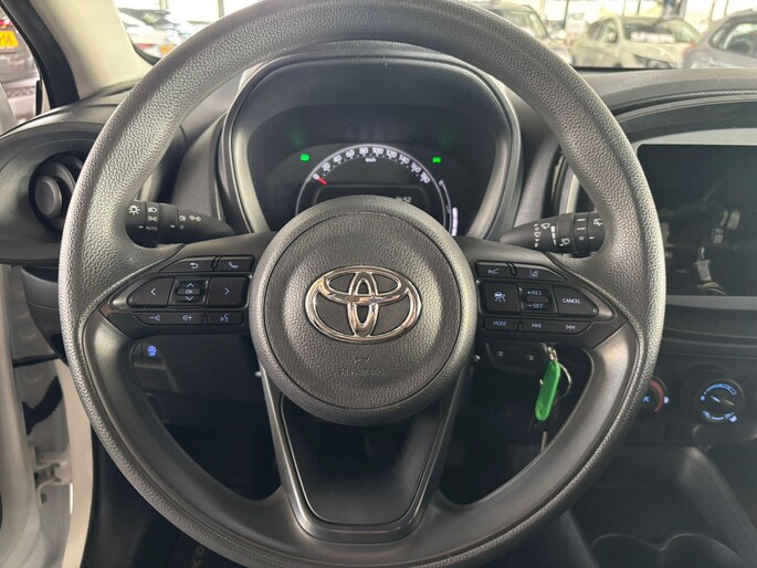 Adaptive cruise control is een comfortabele en veilige optie. Het systeem reguleert de snelheid en houdt automatisch afstand tot uw voorligger. Aan boord van deze Toyota Aygo X is een achteropkomend verkeer waarschuwing voor extra veiligheid. U vindt in deze auto ook airconditioning.