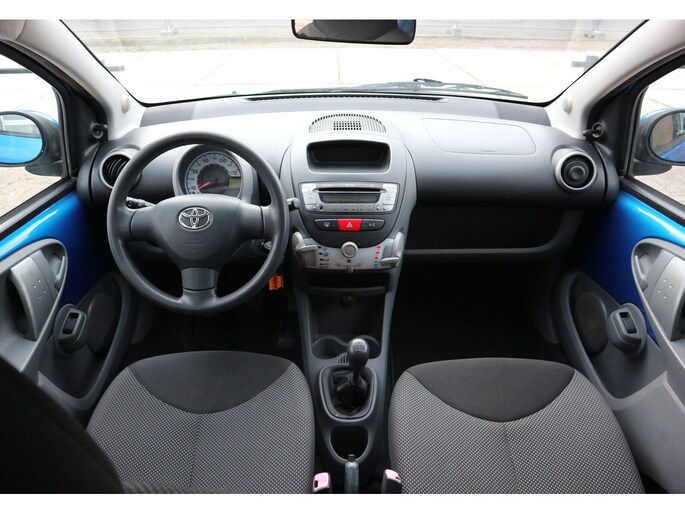 Praktische instapper; Toyota Aygo van bouwjaar 2010, Comet blue metallic, airconditioning, praktische 5-deurs uitvoering. Rijdt heerlijk, zuinig en lekker makkelijk inparkeren.