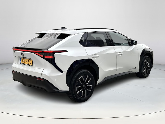 Hij levert uitstekende prestaties en doet dat met zorg voor het milieu. Maar tegelijk is de Toyota bZ4X ook gewoon een auto die u volop ruimte en comfort biedt. Dankzij de automatische transmissie en elektrische aandrijving, navigeert u gemakkelijk door het verkeer. De achterbankverwarming, het verwarmbare stuurwiel en de verwarmbare voorstoelen brengen passagiers en bestuurder snel weer op temperatuur, ongeacht hoe koud het buiten is. Een handige voorziening op deze auto is de elektrische achterklep die u op afstand kunt openen. Tot de voorzieningen van deze auto behoren 18 inch lichtmetalen velgen, LED koplampen, dakspoiler, extra getint glas, in delen neerklapbare achterbank en LED-achterlichten.