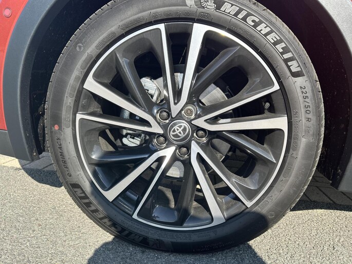 Toyota heeft een onverwoestbare reputatie als het gaat om technologische innovatie, maar ook om economisch gebruik en betaalbaar onderhoud. 'Let's go places'. Zegt u het maar, waarheen? Dit is een splinternieuwe auto, die nu uit voorraad leverbaar is. Met de huidige benzineprijzen is deze hybride motor van deze auto misschien wel de allerbeste oplossing. Zuiniger, schoner en toch van alle markten thuis. Op koude dagen voelt u zich snel behaaglijk op de verwarmbare stoelen. De elektrische achterklep opent met een druk op de knop, zodat u gemakkelijk toegang heeft tot de bagageruimte. Het glazen panoramadak zorgt voor een onovertroffen uitzicht. Stramme vingers krijgen 's winters een VIP-behandeling van het verwarmd stuurwiel. Bij de zeer complete uitrusting van deze auto behoren ook 19 inch lichtmetalen velgen, Full LED koplampen, extra getint glas, in delen neerklapbare achterbank, LED-achterlichten en verstelbare lendensteunen.