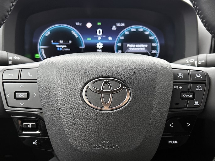 Twijfelen hoeveel ruimte je achter de auto hebt? Met de achteruitrijcamera weet je altijd hoeveel centimeter! Als je de adaptive cruise control inschakelt, regelt de auto zelf de snelheid en de afstand tot de auto voor je. Locatie, motorconditie, storingen... via Connected Services krijg je alle vitale info over de auto door. Ook handig bij pech! Je kunt het audio-installatiesysteem met DAB-ontvangst en het full map navigatiesysteem bedienen met de knoppen op het stuur. Te weinig afstand tussen u en de achterligger? De sensoren registreren het direct en de achteropkomend verkeer waarschuwing geeft een signaal. Ook is de Toyota uitgerust met: electronic climate control, regensensor, keyless entry, buitentemperatuurmeter, automatisch dimmende binnenspiegel en verstelbaar stuur.