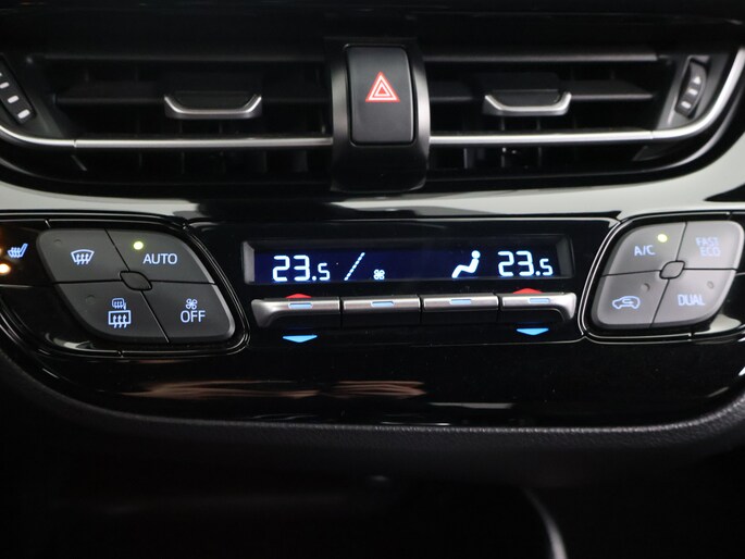 Pragmatisch en veilig als deze auto is, beschikt hij over diverse veiligheidssystemen. Een belangrijke bijdrage aan de veiligheid onderweg levert de verkeersbord-detectie. Het Lane-keeping systeem zorgt dat je mooi binnen de lijntjes blijft. Ongemerkt buiten de rijstrook komen is er niet meer bij. Om de veiligheid extra te vergroten, heeft deze Toyota C-HR Brake Assist. In een noodsituatie treedt dit hulpremsysteem in werking wanneer extra remkracht nodig is. Dankzij veiligheidsvoorzieningen als hill hold functie en bandenspanningcontrolesysteem, ben je steeds veilig onderweg.