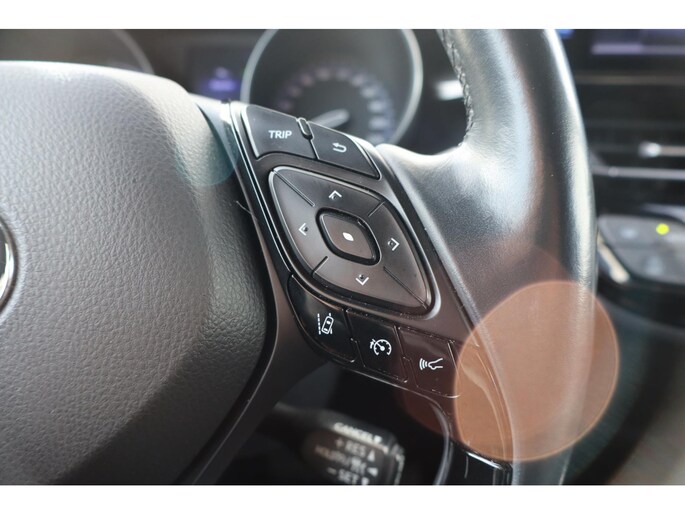 Omdat u nou eenmaal geen ogen in uw achterhoofd heeft, is het altijd lastig om achteruit te rijden zonder brokken te maken. De achteruitrijcamera lost dat probleem op. Adaptive cruise control is een comfortabele en veilige optie. Het systeem reguleert de snelheid en houdt automatisch afstand tot uw voorligger. Als u regelmatig met een aanhanger of een fietsendrager op pad bent, is de afneembare trekhaak een praktische extra. In deze C-HR vindt u schakelaars op het stuur om het navigatiesysteem te bedienen en het audio-installatiesysteem met DAB-ontvangst. Of het buiten nu warm is of koud, dankzij automatische airconditioning is het binnen altijd behaaglijk. Ook regensensor, keyless entry, automatisch dimmende binnenspiegel, lederen stuur en centrale deurvergrendeling met afstandsbediening zijn aan boord.