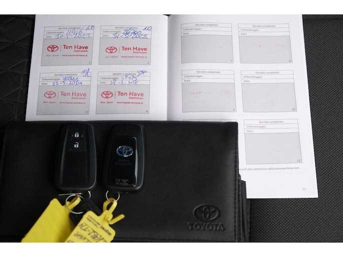 TOYOTA C-HR 1.8 Hybrid Dynamic Automaat | Parkeersensoren voor en achter | Apple Carplay & Android Auto | Toyota Touch® 2 Go Plus navigatiesysteem (inclusief 3 jaar gratis kaartupdates) | Gepolijste 18” lichtmetalen velgen type ‘Style’ | Intelligente parkeersensoren voor en achter | Parkeersensoren voor en achter | Regensensor | Bijrijdersstoel met hoogteverstelling | Blauwe LED verlichting bekerhouders voor | Smart entry-systeem (bestuurder, passagier en kofferruimte) | Smart Key met bewegingssensor | Zelfdimmende binnenspiegel | Buitenspiegels automatisch inklapbaar | Chromen ormamenten onderkant achterbumper (alleen 2.0 Hybrid) | Chromen raamsierlijst | Mistlampen vóór | Buitenspiegels elektrisch verstelbaar en verwarmbaar | LED dagrijverlichting | LED lightguide achterlichten | LED reflector koplampen | Bestuurdersstoel met hoogteverstelling | Dual zone climate control | Elektrisch bedienbare ramen voor en achter | Lederen stuurwiel met bediening voor o.a. audio, Bluetooth®, Toyota Safety Sense en cruise control | Lichte hemelbekleding | Startknop | 7 airbags waaronder knie-airbag | AVAS (Acoustic Vehicle Approach System), 0-25 km/h, niet uitschakelbaar | e-Call en DCM module | Road Sign Assist (RSA); verkeersbordenherkenning | Schemersensor | Snelheidsbegrenzer | Toyota Safety Sense2® | Automatic High Beam (AHB); automatische schakeling groot- en dimlicht | Intelligent Adaptive Cruise Control (IACC) | Lane Departure Alert , Lane Trace Assist en vermoeidheidsherkenning | Pre-Collision system met fietsers (dag) en voetgangers (dag+nacht) detectie, Emergency Steering Assist en Intersection Turn Assist | 4,2” kleuren instrumentenpaneel | Apple Carplay, Android Auto en Smart Device link | Digitale radio (DAB+) | Parkeerhulpcamera achter met hulplijnen | Toyota Touch® 2 multimediasysteem | Tot 10 jaar garantie |