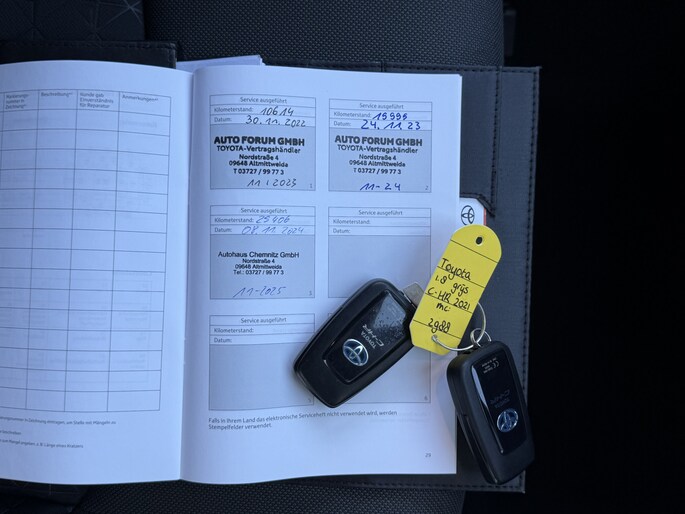 Natuurlijk, dit is een innovatieve auto met zijn hybridetechniek. Maar het is bovendien ook een auto die is gebouwd voor jarenlang rijcomfort. Deze auto uit 2021 heeft nauwelijks gereden, met een tellerstand van slechts 38957 kilometer. Door de combinatie van brandstof- en elektromotor rijdt u met deze hybride Toyota C-HR een stuk voordeliger. En het scheelt in uitstoot bovendien. Op koude en donkere dagen zijn de verwarmbare voorstoelen een uitkomst. Een verwarmd stuurwiel overbodige luxe? Wacht maar tot het kouder wordt! Tot de uitrusting van deze Toyota behoren ook 18 inch lichtmetalen velgen, LED koplampen, in delen neerklapbare achterbank en LED-achterlichten.