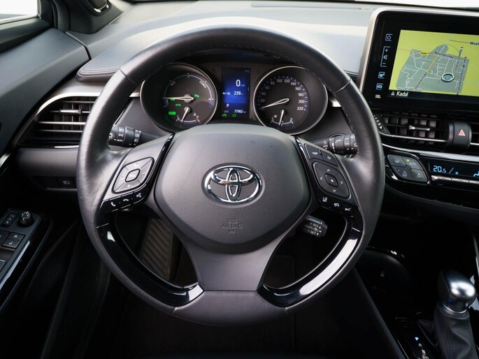 Het is een nette en comfortabele auto, deze Toyota C-HR, hij heeft 77.869 kilometer gelopen. Rijden op brandstof én elektriciteit? Dat kan, met de hybride motor van deze Toyota C-HR. De elektromotor ondersteunt of neemt het deels over van de brandstofmotor als dat uitkomt. Scheelt lekker in de kosten! Van binnen zie je een lederen interieur, een stijlvolle uitvoering. In de verwarmbare voorstoelen zitten is elke keer een welkom gevoel. Verder is de Toyota uitgerust met: 18 inch lichtmetalen velgen, LED koplampen, halflederen bekleding, donker getint glas achter, in delen neerklapbare achterbank en LED-achterlichten.