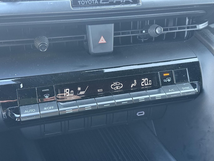 Ook achter de auto geen verrassingen bij het inparkeren. Daarvoor zorgt de achteruitrijcamera. Adaptive cruise control houdt de ingestelde snelheid vast en houdt afstand tot het voertuig voor u. Deze Toyota C-HR is voorzien van remote services. Via uw smartphone bedient u diverse functies ook op afstand en krijgt u informatie over de status van uw auto. De kortste weg, de zuinigste weg, de snelste weg... elke weg is te vinden met het full map navigatiesysteem. De achteropkomend verkeer waarschuwing is een mooie veiligheidsoptie, die middels sensoren in de gaten houdt wat er onderweg achter u gebeurt. Extra opties op deze auto zijn: electronic climate control, DAB ontvangst, regensensor, keyless entry, buitentemperatuurmeter en automatisch dimmende binnenspiegel.