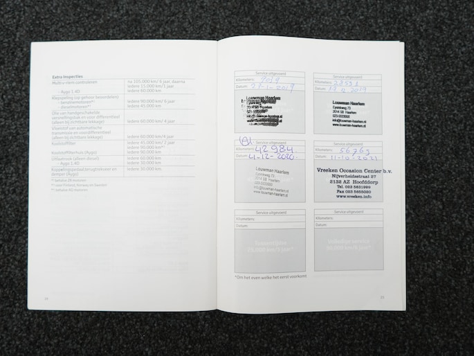 Onderhoudsboekjes: Aanwezig