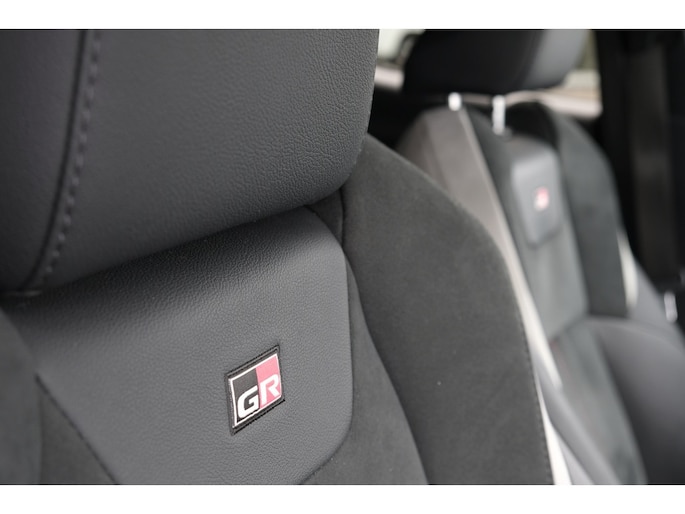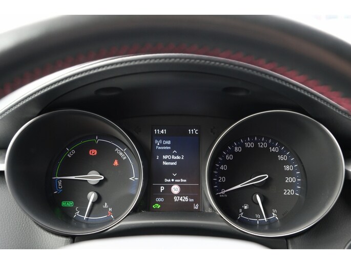 Apple Carplay & Android Auto | JBL Premium audio | Sportieve afstelling onderstel (o.a. veren, dempers en stuurbekrachtinging) | Zwart gepolijste 19” lichtmetalen velgen met sportieve 225/45R19 banden | Afwerking bovenkant dashboard en middenconsole zwart soft-touch | Bekleding, zwart leder/Alcantara met grijze en rode stiksels | Bestuurdersstoel elektrisch verstelbaar | GR Sport type startknop | Rand bovenkant dashboard in Cool Silver | Stuurwiel met geperforeerd leder en rode stiksels | Astral Black 202 solid zwart dak (Night Sky Black 209 Metallic dak bij carrosseriekleur Night Sky Black 209 Metallic) | Dorpelinstaplijsten GR Sport | Donkere koplampbehuizing | Donkergrijze grille en pianozwarte sierlijst onderkant raam | GR Sport logo op achterklep en zwarte Toyota logos voor en achter | GR Sport type pianozwarte spoilerlip aan voorzijde | Pianozwart ornament op zijbumper, mistlamp en achterreflector | Simple Intelligent Park Assist (SIPA); parkeerhulp | Afwerking bovenkant dashboard en middenconsole donkerbruin soft-touch | Bruin met zwarte halflederen bekleding | Nano-e technologie voor zuivering van de interieurlucht | Rand bovenkant dashboard in Soft Silver | Koplamphoogteverstelling, automatisch | LED mistlampen vóór | LED projector koplampen (dimlicht en grootlicht) | LED remlichten en sequentiële LED knipperlichten achter | Meesturende koplampen | JBL Premium audio met 9 JBL speakers én JBL subwoofer | Blind Spot Monitor (BSM); dodehoekdetectie | Instapverlichting bestuurders- en passagierszijde | Rear Cross Traffic Alert (RCTA); kruisend verkeersdetectie achter incl. remfunctie | Elektrisch verstelbare lendensteun bestuurdersstoel | Hemelbekleding zwart | Stoelverwarming voorstoelen | Privacy glass | Gepolijste 18” lichtmetalen velgen type ‘Style’ met 225/50R18 banden | Intelligente parkeersensoren voor en achter | Parkeersensoren voor en achter | Regensensor | Buitenspiegels automatisch inklapbaar | Chromen ormamenten onderkant achterbumper (alleen 2.0 Hybrid) | Chromen raamsierlijst | Mistlampen vóór | Bijrijdersstoel met hoogteverstelling | Blauwe LED verlichting bekerhouders voor | Smart entry-systeem (bestuurder, passagier en kofferruimte) | Smart Key met bewegingssensor | Zelfdimmende binnenspiegel | Buitenspiegels elektrisch verstelbaar en verwarmbaar | LED dagrijverlichting | LED lightguide achterlichten | LED reflector koplampen | Bestuurdersstoel met hoogteverstelling | Dual zone climate control | Elektrisch bedienbare ramen voor en achter | Lederen stuurwiel met bediening voor o.a. audio, Bluetooth®, Toyota Safety Sense en cruise control | Lichte hemelbekleding | Startknop | 7 airbags waaronder knie-airbag | AVAS (Acoustic Vehicle Approach System), 0-25 km/h, niet uitschakelbaar | e-Call en DCM module | Road Sign Assist (RSA); verkeersbordenherkenning | Schemersensor | Snelheidsbegrenzer | Toyota Safety Sense2® | Automatic High Beam (AHB); automatische schakeling groot- en dimlicht | Intelligent Adaptive Cruise Control (IACC) | Lane Departure Alert , Lane Trace Assist en vermoeidheidsherkenning | Pre-Collision system met fietsers (dag) en voetgangers (dag+nacht) detectie, Emergency Steering Assist en Intersection Turn Assist | 4,2” kleuren instrumentenpaneel | Apple Carplay, Android Auto en Smart Device link | Digitale radio (DAB+) | Parkeerhulpcamera achter met hulplijnen | Toyota Touch® 2 multimediasysteem | Tot 10 jaar garantie |