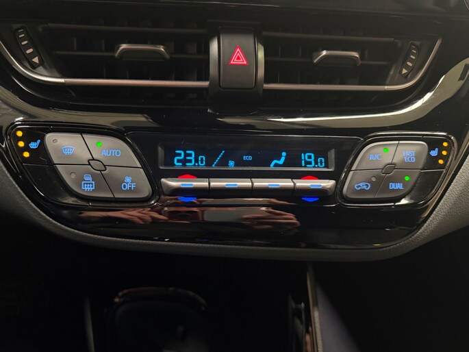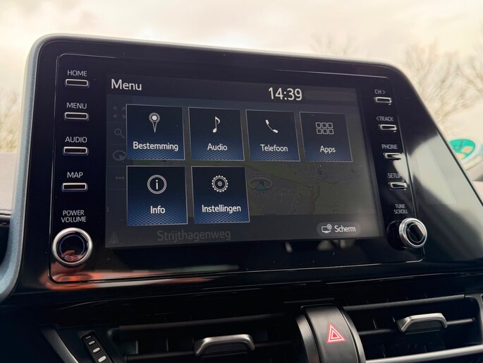 Zoals u mag verwachten van deze Toyota C-HR is hij uitgerust met een reeks aan actieve veiligheidssystemen. De actuele snelheidslimiet, een inhaalverbod en andere verkeersborden. De verkeersborddetectie ondersteunt u tijdens elke rit. Keep your lane? Het Lane-keeping systeem zorgt er automatisch voor. Onbedoeld bumperkleven is er niet bij, dankzij de forward collision warning. Die waarschuwt direct als een botsrisico met uw voorligger dreigt. De veiligheid van deze auto wordt verder verhoogd door dodehoekdetectie, accident avoidance system, hill hold functie, brake assist, vermoeidheidsherkenning en bandenspanningcontrolesysteem.