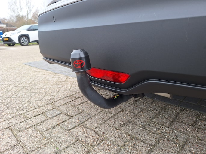 Kinderfietsje niet gezien bij het inparkeren? Dat gebeurt u nooit meer. Daar zorgt de achteruitrijcamera wel voor! Als u de adaptive cruise control inschakelt, regelt de auto zelf de snelheid en de afstand tot de auto voor u. Als u regelmatig met een aanhanger of een fietsendrager op pad bent, is de afneembare trekhaak een praktische extra. Met uw smartphone maakt u overal contact met de auto. Remote services geven direct inzicht in uiteenlopende functies en zijn op afstand te activeren. Elk genre muziek komt tot z'n recht. Het high performance audiosysteem is perfect in te regelen op uw smaak! Met full map navigatiesysteem, automatische airconditioning, DAB ontvangst, regensensor, keyless entry en automatisch dimmende binnenspiegel is deze Toyota helemaal compleet.