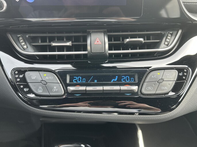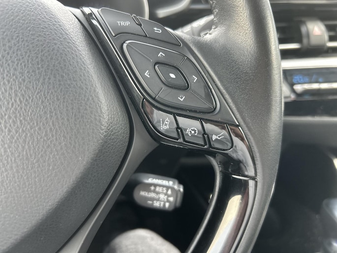 Boem is ho? Dat is verleden tijd. De achteruitrijcamera laat precies zien hoeveel ruimte u achter nog heeft! Adaptive cruise control houdt de ingestelde snelheid vast en houdt afstand tot het voertuig voor u. U verwacht natuurlijk automatische airconditioning in deze auto, en die is er dan ook. Natuurlijk is een complete auto als deze ook voorzien van sensoren die de omgeving in de gaten houden. Deze Toyota heeft niet alleen een automatisch inschakelbare verlichting aan boord, maar ook een regensensor. Een prettige optie is de keyless entry, die ervoor zorgt dat de Toyota C-HR automatisch van het slot gaat als u dichtbij komt. U bent in deze Toyota ook voorzien van full map navigatiesysteem, DAB ontvangst en lederen stuur.