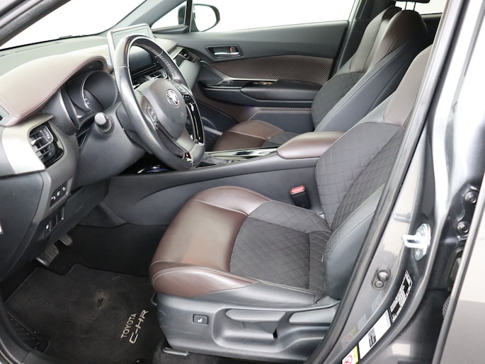 De vormgeving van deze Toyota C-HR is stijlvol maar ingetogen en dat maakt meteen duidelijk dat jij van deze auto pure kwaliteit mag verwachten. De combinatie van een verbrandingsmotor en een elektromotor zorgt voor prima rij-eigenschappen en een laag brandstofverbruik. Winters instappen is er niet meer bij dankzij de stoelverwarming. In deze Toyota profiteer jij onder andere ook van: 18 inch lichtmetalen velgen, halflederen bekleding, LED-dagrijverlichting, donker getint glas achter, in delen neerklapbare achterbank en verstelbare lendensteunen.