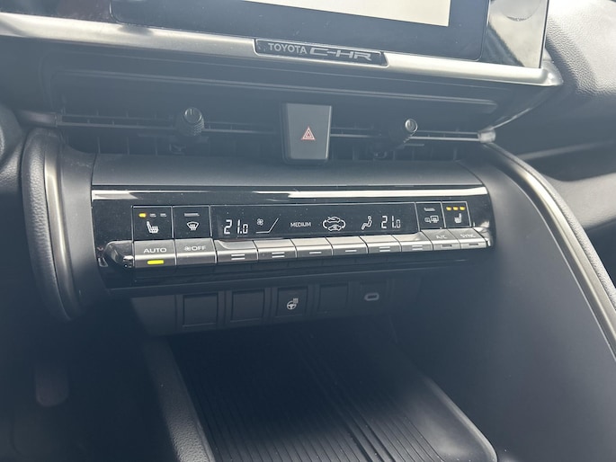 Ontspannen en zorgeloos autorijden, dat doet u met deze Toyota C-HR. Deze Toyota C-HR is voorzien van een hybride motor. Dat betekent dat de aandrijving wordt geleverd door zowel een brandstofmotor als een elektromotor, die slim samenwerken om zuinig over de weg te gaan. Donkere en koude maanden? U zit altijd goed dankzij de stoelverwarming. Als de 'r' in de maand zit, komt zo'n verwarmd stuurwiel als geroepen! Bij de zeer complete uitrusting van deze auto behoren ook 18 inch lichtmetalen velgen, LED koplampen, extra getint glas, in delen neerklapbare achterbank, LED-achterlichten en verstelbare lendensteunen.