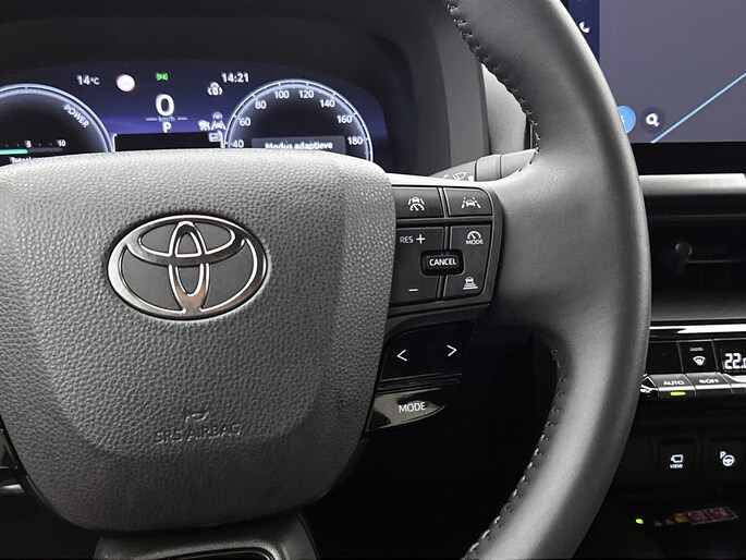Door het combineren van beelden van vier camera's, biedt de 360 graden camera een naadloos en gedetailleerd beeld van de hele omgeving rondom deze auto. Met adaptive cruise control houdt de auto zelfstandig afstand tot jouw voorligger. Een veiligheidsverhogende optie waarmee je comfortabel onderweg bent. Dankzij Connected Services weet je precies waar je auto geparkeerd staat. Ook andere functies, zoals bandenspanning en brandstofniveau, zijn via de app altijd onder handbereik. Prettig, altijd weten waar je moet zijn en hoe lang de rit nog duurt met het full map navigatiesysteem. Te weinig afstand tussen u en de achterligger? De sensoren registreren het direct en de achteropkomend verkeer waarschuwing geeft een signaal. Je bent in deze Toyota ook voorzien van electronic climate control, draadloos opladen, DAB ontvangst, regensensor, keyless entry en buitentemperatuurmeter.