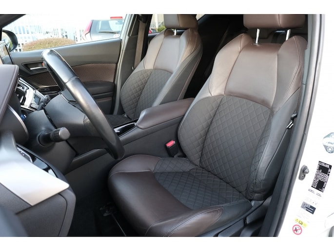 TOYOTA C-HR 1.8 Hybrid Executive Automaat | Kaartenvak op bestuurders- en passagiersstoel | Parkeersensoren voor en achter, 12 sensoren | Simple Intelligent Park Assist (SIPA); parkeerhulp | Blind Spot Monitor (BSM); dodehoekdetectie | Rear Cross Traffi c Alert (RCTA); kruisend verkeersdetectie achter | Afwerking dashboard donkerbruin soft-touch | Bekleding bruin lederen wangen met zitvlak bruin leder/grijs stof | Nano-e technologie voor zuivering van de interieurlucht | Toyota Touch With Go Plus (inclusief 3 jaar gratis kaartupdates) | Digitale radio (DAB+) | Afwerking middenconsole metallic zwart | Deurgrepen interieur chroom afwerking | Elektrisch verstelbare lendensteun | LED interieurverlichting deurgreep en bekerhouder | Stoelverwarming bestuurders- en passagiersstoel | Smart entry-systeem (bestuurder, passagier en koff erruimte) | Startknop | B-stijl zwart gelakt | Buitenspiegels elektrisch verstelbaar- verwarmbaar en inklapbaar | Privacy glass achterruit achterklep | Privacy glass zijramen | 4,2” kleurendisplay | 6 speakers | Multimediasysteem Toyota Touch® 2 | Parkeerhulpcamera achter met hulplijnen | Automatisch dimmende binnenspiegel | Automatische airconditioning | Lederen stuurwiel met bediening voor o.a. audio, Bluetooth® en cruise control | Startknop (alleen i.c.m. 1.8 Hybrid) | Regensensor | Road Sign Assist (RSA); verkeersbordenherkenning | Buitenspiegels elektrisch verstelbaar en verwarmbaar | Mistlampen voorzijde | Buitenspiegels elektrisch verstelbaar en verwarmbaar | ‘Follow me home’ verlichting | LED dagrijverlichting | Afwerking dashboard zwart soft-touch | Bestuurdersstoel met hoogteverstelling | Donkere hemelbekleding | Elektrisch bedienbare ramen vóór en achter | Handbediende airconditioning | Stuurwiel met bediening voor Toyota Safety Sense | 7 airbags waaronder knie-airbag | Schemersensor | Snelheidsbegrenzer | Toyota Safety Sense® » Adaptive Cruise Control (ACC) » Automatic High Beam (AHB); automatische schakeling groot- en dimlicht » Lane Depart Alert (LDA) met automatische stuurcorrectie » Pre-collision System (PCS) met voetgangersherkenning | Veiligheidssystemen: ABS, EBD, BA, VSC, en TRC | 3,7” monochrome info display | 4 speakers | Bluetooth® handsfree systeem | Bluetooth® music streaming | Radio/CD – speler met AUX/USB aansluiting | Tot 10 jaar garantie |