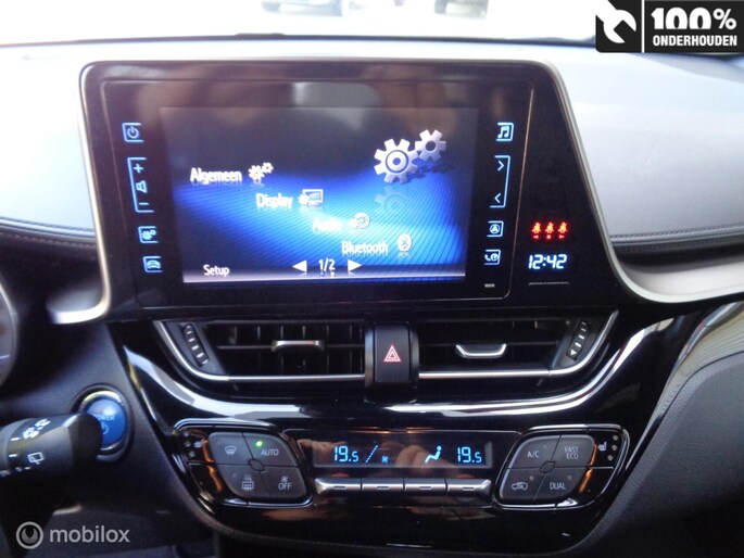 Zoals u mag verwachten van deze Toyota C-HR is hij uitgerust met een reeks aan actieve veiligheidssystemen. De actuele snelheidslimiet, een inhaalverbod en andere verkeersborden. De verkeersborddetectie ondersteunt u tijdens elke rit. Het Lane-keeping systeem doet precies wat nodig is: waarschuwen en corrigeren bij onbedoelde overschrijding van de rijstrooklijnen. Brake assist verhoogt de remdruk in een noodsituatie zodat u sneller stil staat. De auto is ook uitgerust met dodehoekdetectie, hill hold functie en bandenspanningcontrolesysteem.