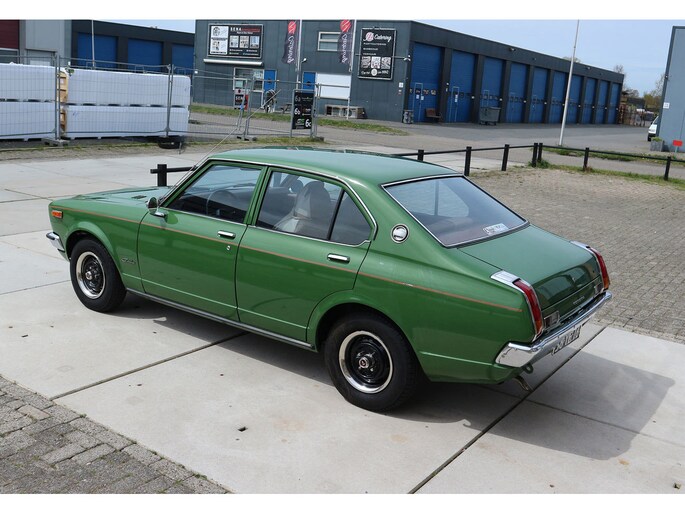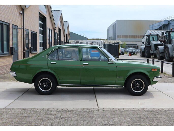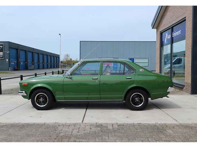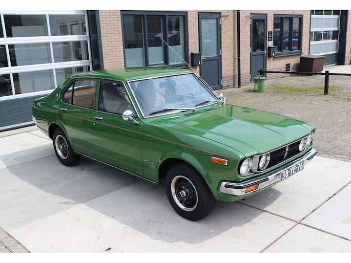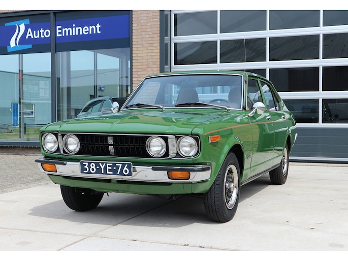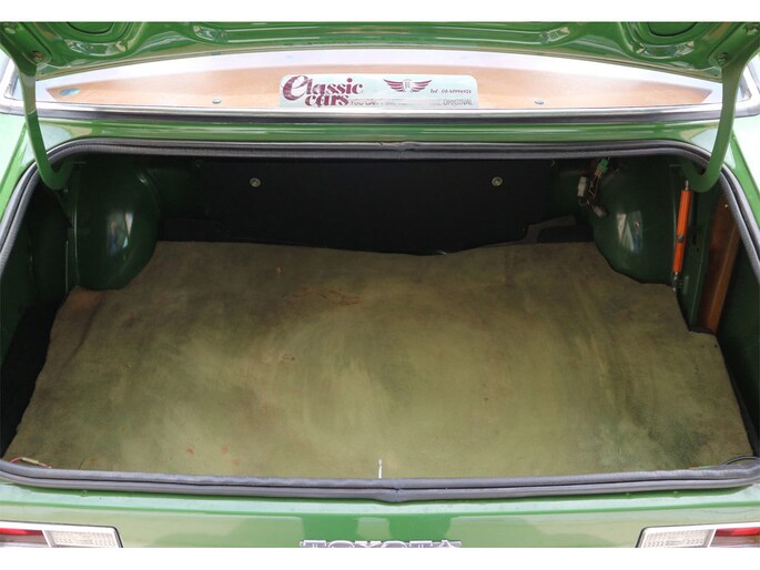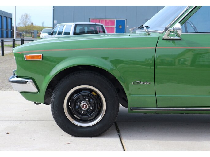 Vintage-alert! Toyota Carina 1.6 automaat 4-deurs van bouwjaar 1977 in groen metallic, met beige leder en getint glas. Deze Carina TA1 / A10 / serie 1 is door een kenner enige jaren geleden uit Duitsland geïmporteerd en daarna volledig gerestaureerd, met droogijs straalbehandeling van de bodem, alles roestvrij gemaakt en volledig opnieuw gespoten in de originele kleur groen (metallic).