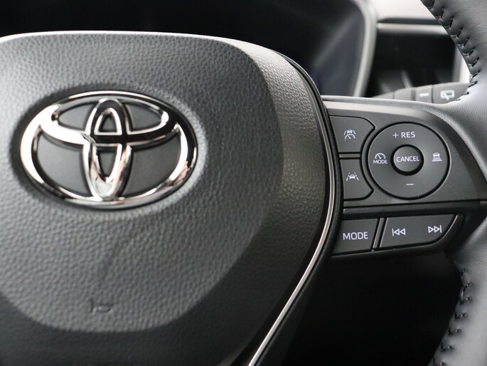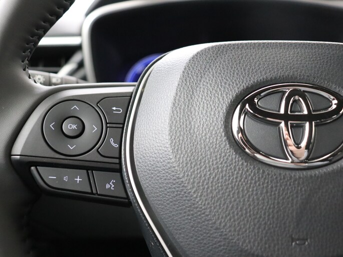 Kommaar-kommaar-kommaar, aldus de achteruitrijcamera. Iedere centimeter vrije ruimte komt haarscherp in beeld. Schadevrij inparkeren maar! Adaptive cruise control is veilig en comfortabel. De snelheidsregelaar houdt automatisch afstand tot het voertuig dat voor je rijdt. Deze auto gaat met je in gesprek. Hij vertelt met behulp van remote services alles over de status van diverse onderdelen en laat zich desgevraagd ook activeren. Gewoon via je smartphone. Je kunt je handen aan het stuur houden en je ogen op de weg. Want het audio-installatiesysteem, met DAB-ontvangst, en het full map navigatiesysteem bedien jij vanaf het stuurwiel. Moet je smartphone ook even tanken? Bijladen kan supersimpel met de draadloze telefoonlader. Met achteropkomend verkeer waarschuwing, kruisend verkeer detectie, automatische airconditioning, regensensor, buitentemperatuurmeter en automatisch dimmende binnenspiegel is deze Toyota helemaal compleet.
