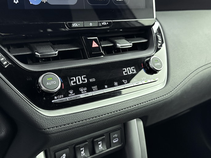 Alles vrij achter? De achteruitrijcamera laat het meteen zien. Adaptive cruise control houdt de ingestelde snelheid vast en houdt automatisch afstand tot jouw voorligger. In het zeldzame geval van een storing weet je nog eerder dan de monteur wat er mankeert. Je smartphone met remote services geeft direct inzicht. Altijd een deskundige gids aan boord, dankzij het full map navigatiesysteem. De achteropkomend verkeer waarschuwing is een mooie veiligheidsoptie, die middels sensoren in de gaten houdt wat er onderweg achter je gebeurt. De Toyota is standaard voorzien van: kruisend verkeer detectie, automatische airconditioning, draadloos opladen, DAB ontvangst, regensensor en buitentemperatuurmeter.