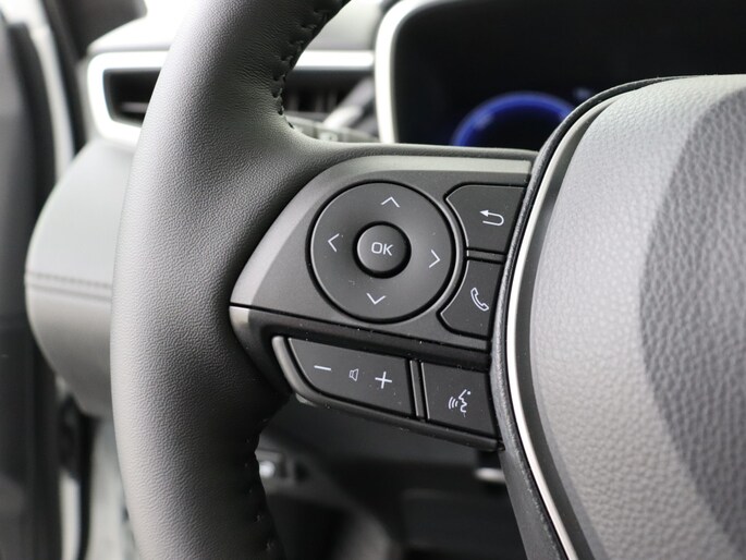 Altijd de benodigde functies in beeld? Het digitale dashboard zorgt ervoor. Bij het inparkeren hoef je het laatste stukje niet te gokken: de achteruitrijcamera kijkt voor je uit. Adaptive cruise control is veilig en comfortabel. De snelheidsregelaar houdt automatisch afstand tot het voertuig dat voor je rijdt. Vanaf elke plek contact maken met deze auto: dat kan met behulp van remote services, die je simpel activeert met je smartphone. Het infotainmentaanbod is zeer uitgebreid. Ontspannen reizen doe je met behulp van het navigatiesysteem terwijl je muziek afspeelt via het audio-installatiesysteem met DAB-radio. Je bent in deze Toyota ook voorzien van electronic climate control, draadloos opladen, regensensor, keyless entry, automatisch dimmende binnenspiegel en centrale deurvergrendeling met afstandsbediening.