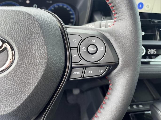 Het ruime interieur van de Toyota Corolla Cross Hybrid 180 GR Sport biedt plaats aan vijf personen en is voorzien van diverse handige opties. Zo is het stuur verstelbaar, waardoor je altijd de ideale rijpositie kunt vinden voor optimaal comfort en controle. Dankzij de verkeersbord detectie hoef je geen enkel verkeersbord meer te missen, wat bijdraagt aan een veilige en zorgeloze rit.