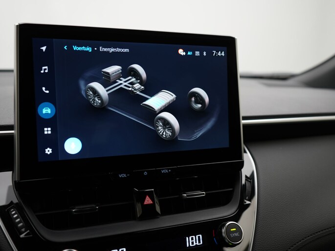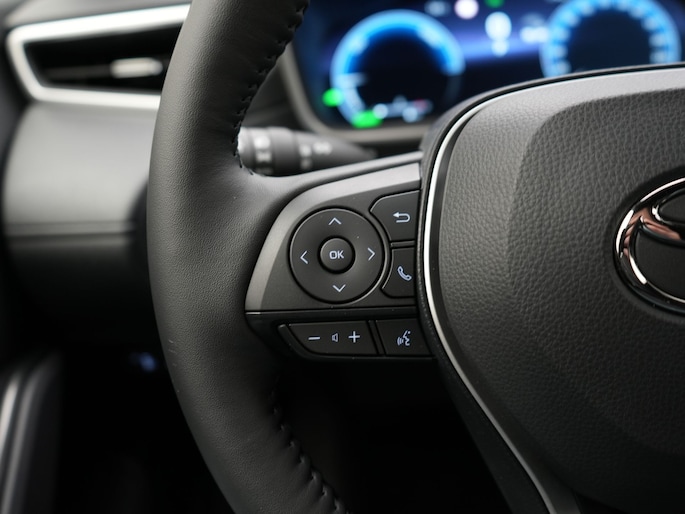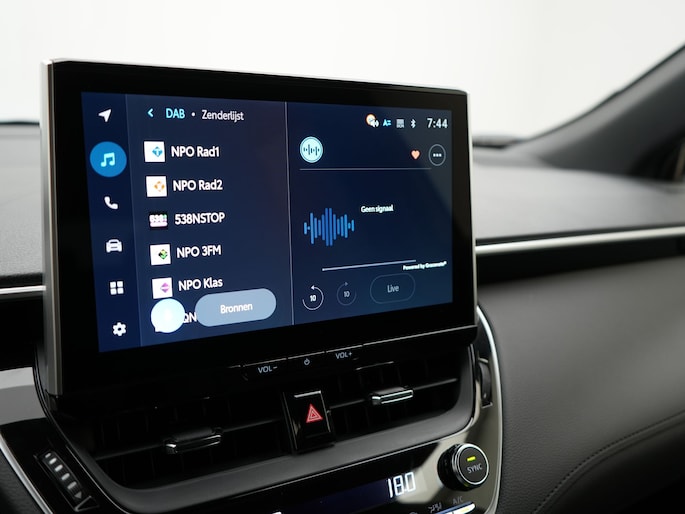 Deze auto is voorzien van een digitaal dashboard waarmee je de cockpit-interface kunt personaliseren. Alles vrij achter? De achteruitrijcamera laat het meteen zien. Met adaptive cruise control houdt de auto zelfstandig afstand tot jouw voorligger. Een veiligheidsverhogende optie waarmee je comfortabel onderweg bent. Kilometerstand? Oliepeil? Accuspanning? Allemaal te zien via de app. Overal. Altijd. Dankzij Connected Services. Wat wil je onderweg horen? Er is volop keus, dankzij bluetooth. Het navigatiesysteem is met het audio-installatiesysteem gecombineerd. De uitrusting van deze Toyota is met electronic climate control, draadloos opladen, DAB ontvangst, regensensor, keyless entry en automatisch dimmende binnenspiegel behoorlijk compleet.
