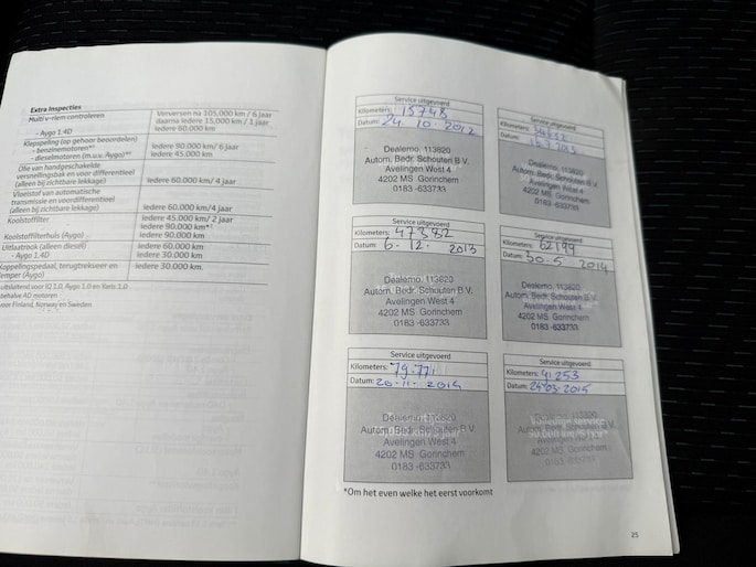 Onderhoudsboekjes: Aanwezig