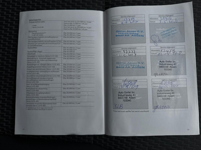Onderhoudsboekjes: Aanwezig