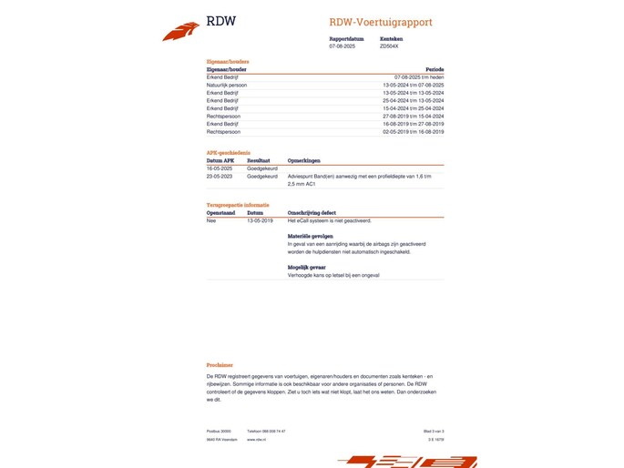 Kilometerstand gecontroleerd