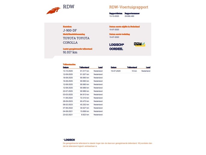 Kilometerstand gecontroleerd