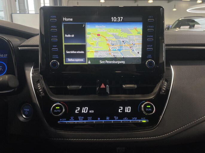 Deze Corolla heeft parkeersensoren voor en achter om het parkeren gemakkelijk en veilig te maken. Achter is zelf een camera gemonteerd zodat u bij het achteruit rijden precies kunt zien wat u doet. Het automatische noodremsysteem kan ingrijpen bij een naderende aanrijding. Op die manier kan de auto een fout van de bestuurder corrigeren en een aanrijding voorkomen of de impact van de aanrijding verminderen. Bij een aanrijding belt de auto zelf met de hulpdiensten, ook als er geen telefoon is aangesloten. De locatie wordt dan ook meegestuurd. Zo kan de auto zelf hulp inschakelen, ook als u dat zelf niet meer kunt. Doormiddel van een lampje in uw buitenspiegels waarschuwt de auto u voor verkeer in uw dode hoek. Een veilig gevoel.