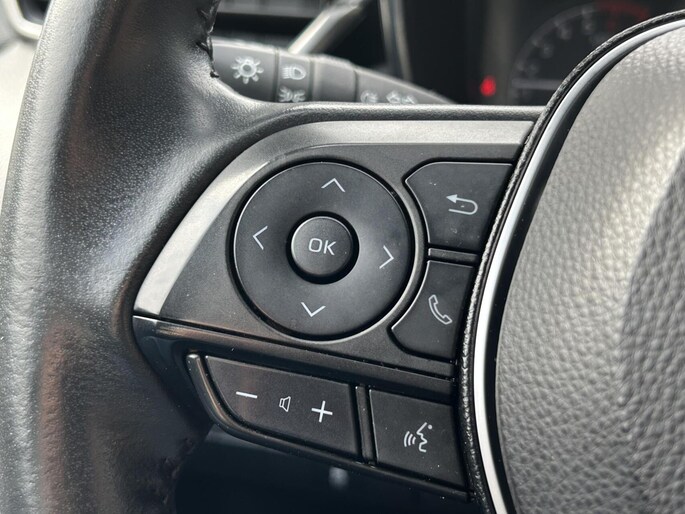 De achteruitrijcamera vergemakkelijkt achteruit inparkeren. U ziet duidelijk wat er achter de auto gebeurt. Als u de adaptive cruise control inschakelt, regelt de auto zelf de snelheid en de afstand tot de auto voor u. De ingebouwde file assistent is een echte helper als het vaststaat onderweg. Het systeem meet ruimte tot de auto vóór u permanent en activeert zelfs de remmen als uw voorligger stopt. De ingebouwde Connected Services vertellen u via de app alles over de status van de auto. Locatie, onderhoudsstatus, brandstofpeil en nog veel meer! Laat u onderweg niet afleiden, de bediening van het audio-installatiesysteem gaat met knoppen op het stuur en met spraak. Natuurlijk is de audio-installatie voorzien van DAB-ontvangst. De Toyota is standaard voorzien van: achteropkomend verkeer waarschuwing, automatische airconditioning, buitentemperatuurmeter, met startonderbreker en centrale deurvergrendeling met afstandsbediening.