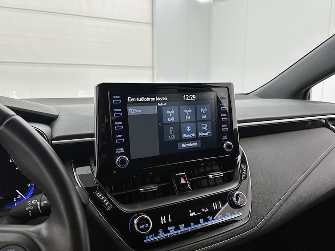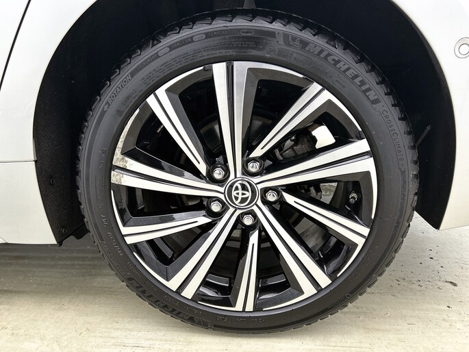 Je wordt geïntroduceerd tot de digitale wereld van mobiliteit waarop alles wat jij wenst wordt geprojecteerd op het digitale dashboard. De achteruitrijcamera laat duidelijk zien hoeveel ruimte je nog hebt bij het inparkeren. Adaptive cruise control houdt de ingestelde snelheid vast en houdt automatisch afstand tot jouw voorligger. Dankzij Connected Services heb je overal en altijd je dashboard op zak. Alle belangrijke functies zijn te checken via de app. Laat je onderweg niet afleiden, de bediening van het audio-installatiesysteem gaat met knoppen op het stuur en met spraak. Natuurlijk is de audio-installatie voorzien van DAB-ontvangst. Ook is de Toyota uitgerust met: achteropkomend verkeer waarschuwing, automatische airconditioning, draadloos opladen, regensensor, keyless entry en buitentemperatuurmeter.