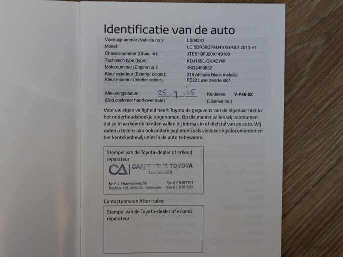 Betreft een zeer goed onderhouden en complete Toyota Land-cruiser! Het werkpaard van Toyota. Deze echte alleskunner is compleet uitgevoerd en is o.a. voorzien van; Lederen bekleding, Stoelverwarming, Climate control, Cruise control, Parkeercamera, Navigatiesysteem, verstralers (gekoppeld aan groot licht), All-terrain Geolandar banden, hoge en lage gearing waardoor geen terrein te gek is voor deze land-cruiser. Dit betreft de 3.0D en mag daarmee 3500KG geremd trekken, iets wat de meeste helaas niet meer mogen. Ook is deze auto keurig dealer onderhouden. Zo heeft de auto zijn laatste onderhoud gehad op 29-08-2024 bij 230.550 kilometer t.w.v. €1.650 (hierbij zijn de remschijven en blokken aan de voorzijde ook vervangen).