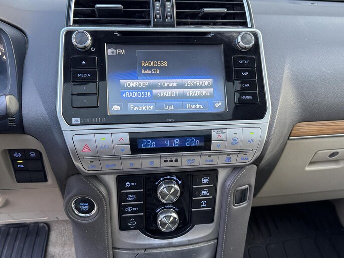Met zijn dynamische eigenschappen belooft deze Toyota LandCruiser jou een heleboel rijplezier. Hij is ontwikkeld op een geavanceerd onderstel en biedt altijd een veilig weggedrag. De combinatie van dieselmotor en automatische transmissie staat garant voor soepel en zuinig rijgedrag. Luchtvering zorgt voor een onovertroffen comfort tijdens het rijden. Met zijn lederen bekleding is deze Toyota comfortabel en stijlvol. De verwarmbare voorstoelen benadrukken nog maar eens dat we hier te maken hebben met een regelrechte verwenauto voor bestuurder en bijrijder. Het interieur lijkt groter en ruimtelijker dankzij het elektrisch bedienbare glazen panoramadak. Bij de uitrusting van deze Toyota horen onder meer 19 inch lichtmetalen velgen, LED koplampen, adaptief dempingsysteem, trailer assistent, donker getint glas achter en treeplanken.