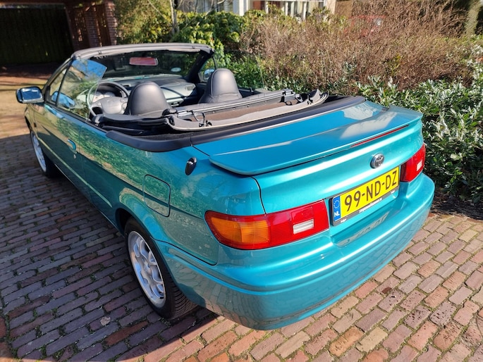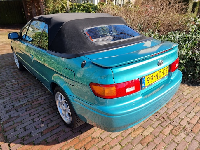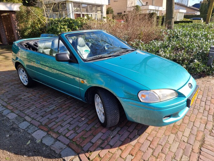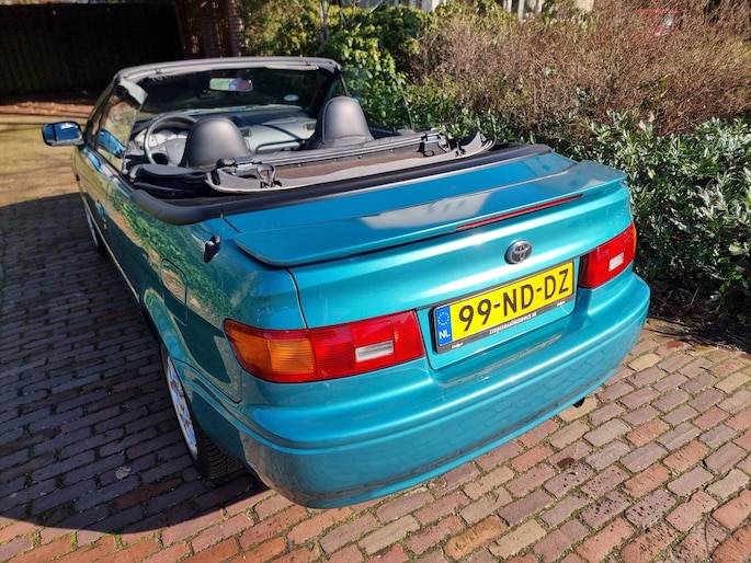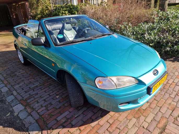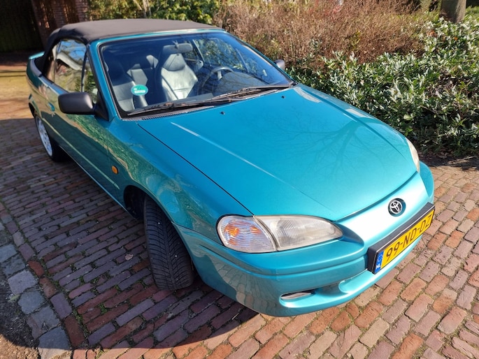 In ZEER nette staat verkerende Toyota Pase Cabrio 1.5i GT voorzien van o.a. ; Elektrische ramen en spiegels,Stoelverwarming,Stuurbekrachteging en Zwart leder interieur ...Voor een uitgebreide fotoreportage kijk op onze website met 50 foto's ...