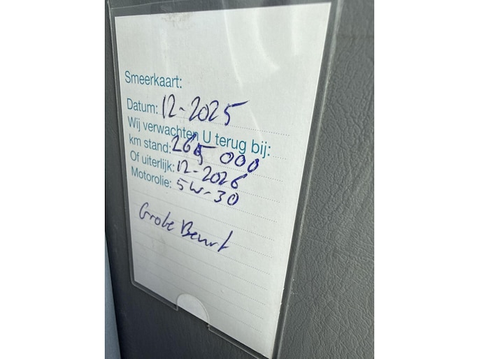 Deze bestaat uit een onderhoudsbeurt volgens fabrieksschema, nieuwe APK en 6 maanden garantie op motor + versnellingsbak (garantie bij een garage naar uw keuze).