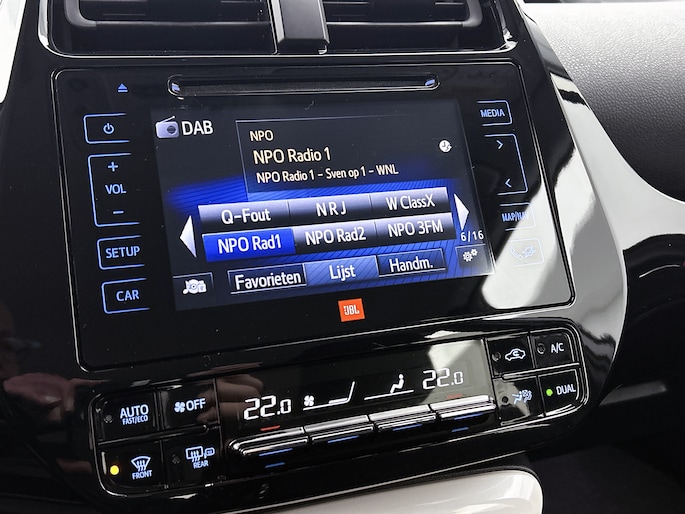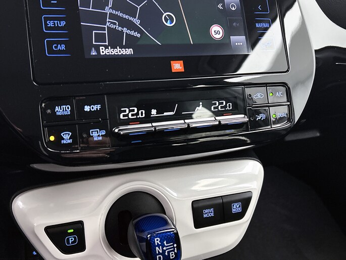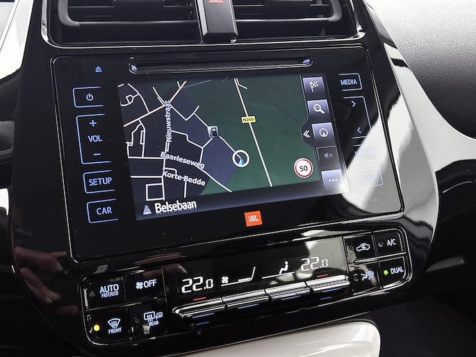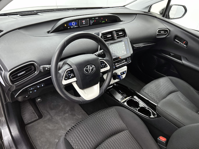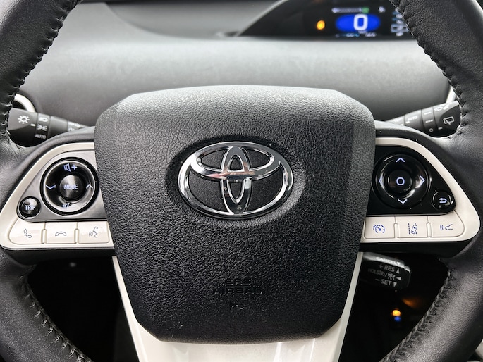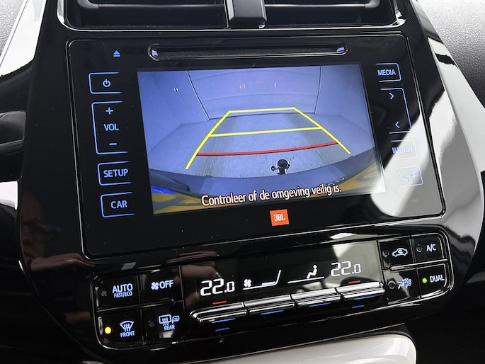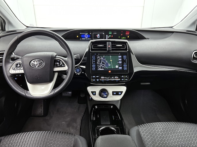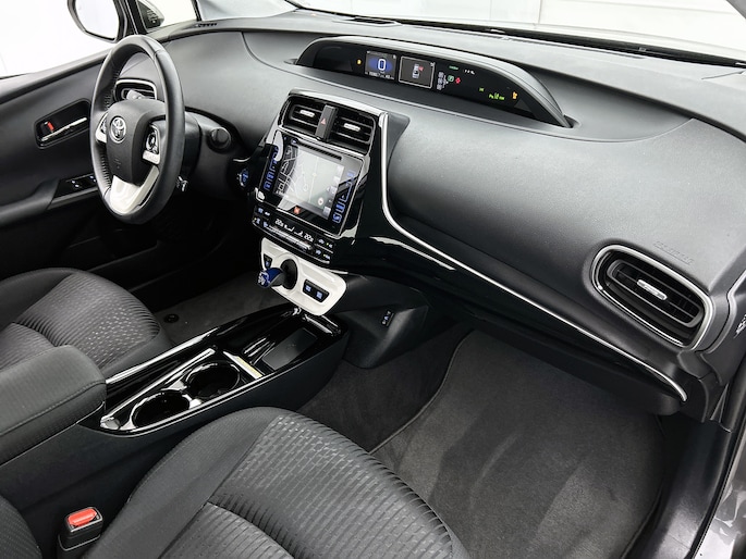 De nieuwste veiligheidssystemen komen in deze Toyota Prius samen. Tijdens de rit heb je altijd een bijrijder, want de verkeersbord-detectie leest de borden langs de weg en projecteert ze voor je op het instrumentarium. Het Lane-keeping systeem let constant op en waarschuwt of corrigeert als je onoplettend over de lijnen van de rijstrook gaat. De sensor van het forward collision warning-systeem registreert permanent de afstand tot voorliggers en grijpt in als een botsing dreigt. Dankzij veiligheidsvoorzieningen als head-up display, dodehoekdetectie, hill hold functie, brake assist en bandenspanningcontrolesysteem, ben je steeds veilig onderweg.