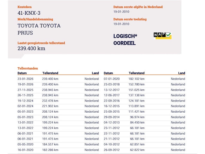Kilometerstand gecontroleerd