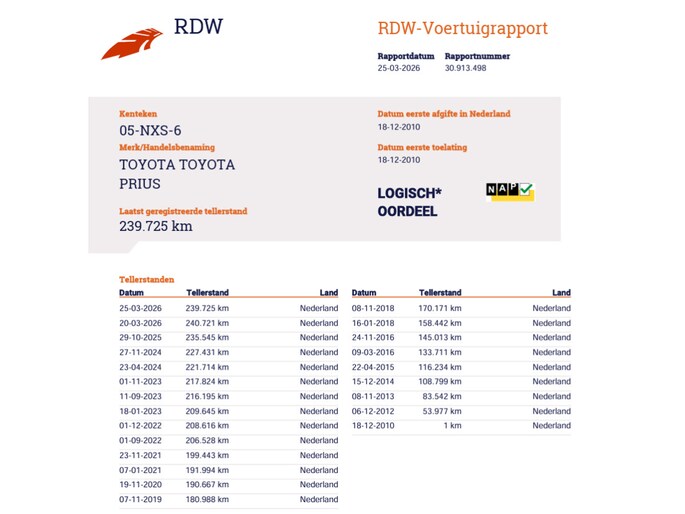 Kilometerstand gecontroleerd