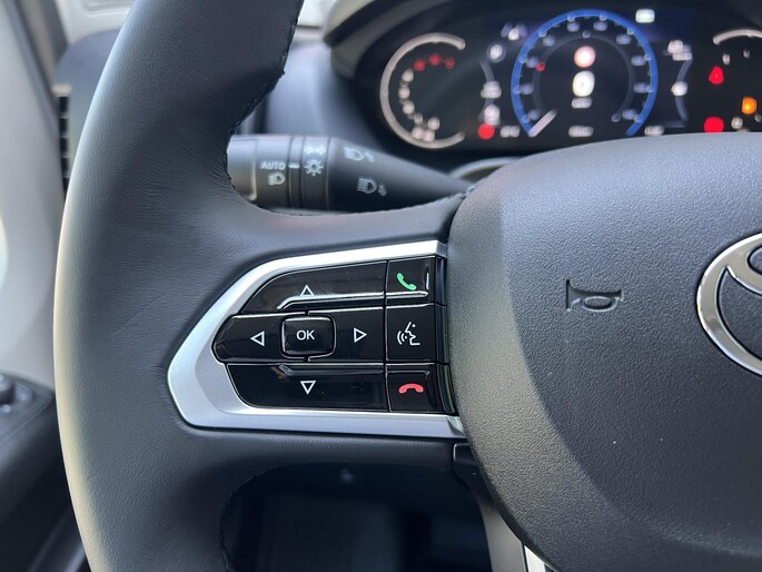 Het digitale dashboard rekent mee, denkt mee en rijdt mee. Alle info overzichtelijk in beeld, overal. De parkeerhulp met achteruitrijcamera brengt precies in zicht wat zich achter u bevindt en toont een glashelder beeld op hoge resolutie. Een geluidssignaal waarschuwt hoeveel ruimte u nog heeft. Met adaptive cruise control houdt de auto zelfstandig afstand tot uw voorligger. Een veiligheidsverhogende optie waarmee u comfortabel onderweg bent. Gemak dient de mens. Dankzij de spraaksturing bedient u de belangrijkste functie met uw stem. Connected Services voegt nog meer comfort en veiligheid toe aan deze auto. Met navigatiesysteem, automatische airconditioning, draadloos opladen, DAB ontvangst, lederen stuur en centrale portiervergrendeling is deze Toyota helemaal compleet.