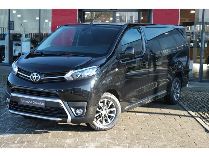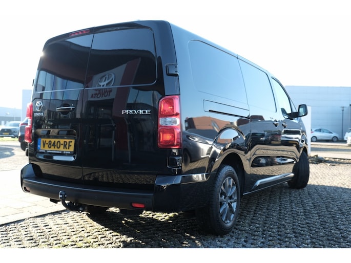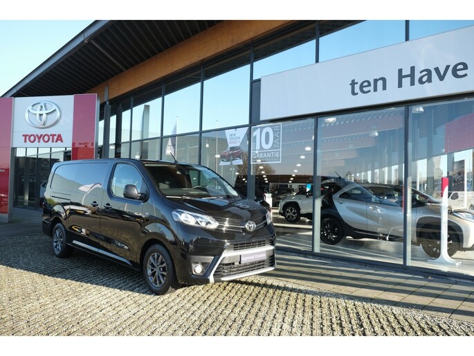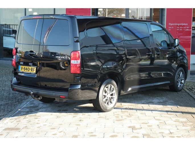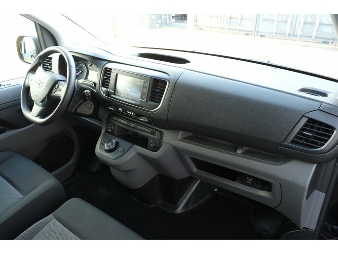 TOYOTA PROACE Long Worker 2.0 D-4D 177PK Professional Automaat| L2| L3| Trekgewicht 2200kg| Trekhaak| Volledige betimmering | Lichtmetalen velgen | Navigatiesysteem | Parkeersensoren achter (4x) | Toyota Pro-Touch radio met 7” kleurenscherm | Regensensor | Schemersensor | | Akoestische voorruit | Automatisch dimmende binnenspiegel | Bekleding stof donkergrijs | Bijrijderstoel met armsteun | Bochtenverlichting (alleen 177pk automaat) | Buitenspiegels elektrisch inklapbaar en in carrosseriekleur | Bumpers volledig in carrosseriekleur (Long Worker middendeel achterbumper in zwart) | Climate Control links en rechts gescheiden | Mistlampen vóór | Portiergrepen in chroom | Smart Entry en startknop | Toyota Pro-Touch DAB+ radio met 7” kleurenscherm | Volledige tussenwand met ruit | Zijbescherming in carrosseriekleur2 speakers en 2 tweeters | Afstandsbediening t.b.v. centrale portier vergrendeling | Airconditioning handbediend | Autofunctie voor elektrische raambediening | Bekleding stof lichtgrijs / kunstleder donkergrijs | Bestuurdersstoel in hoogte verstelbaar | Buitenspiegels elektrisch bedienbaar en verwarmd | Radio met Bluetooth® en USB aansluiting | 12V aansluiting in dashboardkastje en laadruimte Airbag bestuurder + passagier | Bandenspanningscontrolesysteem (TPWS) | Bestuurdersstoel met armsteun | Bijrijdersbank | Buitenspiegels, deurgrepen en bumpers zwart (bovenzijde bumper in kleur) | Centrale portiervergrendeling via sleutel | Cruise Control met snelheidsbeperking | Elektrische ramen vóór | Gesloten achterdeuren (180° te openen) | Rechter schuifdeur | Reservewiel voorwaardig | Volledige tussenwand gesloten|